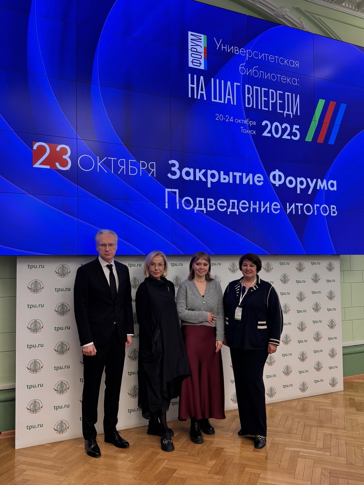 23 октября 2025 г. в Томске на форуме «Университетская библиотека: на шаг впереди» состоялась финальная церемония, где объявили итоги IV международного конкурса «Лаборатория лидерства-2025: лучший университетский библиотекарь» и новую университетскую библиотечную столицу.